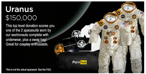 6月11日,美国色情网站Pornhub发起众筹项目“Sexploration”,希望前往太空拍史上第一部太空色情片。Pornhub的目标是筹得340万美元(约2110万人民币),如果成功,预计在2016年年底成片。