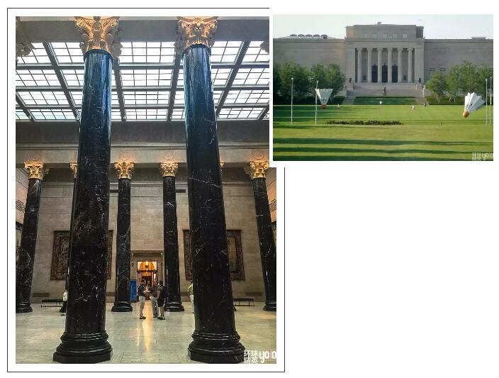 从前广场远看过去,纳尔逊 阿特金斯艺术博物馆显得很庄重,爱奥尼亚式的石柱是典型的古希腊建筑风格,以及新建的用玻璃做幕墙的现代展馆,都充分彰显了传统与现代并存的文化内涵。