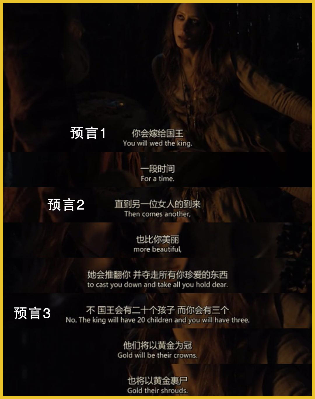蛤蟆巫姬曾给年幼的瑟曦算过一卦,现在,这三个预言已经成为现实。▼