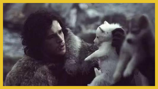 囧的那只,是后来在窝外发现的,一只与众不同,浑身雪白的冰原狼。这也预示了囧的真实身份和其他史塔克不一样。▼