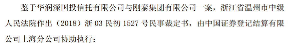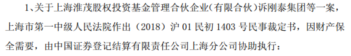 更为严重的在后面,据2019年4月12日公告内容显示,控股股东还收到了一份执行裁定书,公司控股股东刚泰矿业、刚泰集团有限公司(下称刚泰集团)所持ST刚泰股份被法院执行拍卖,刚泰矿业和刚泰集团将被拍卖的股份分别有3.65亿股和1.74亿股,分别占刚泰矿业、刚泰集团所持公司股份的98.87%和89.15%,合计占公司总股本的36.26%,而本次拍卖事项有可能导致公司实际控制权发生变更。对此,交易所还发函问询是否存在潜在意向受让方等信息。