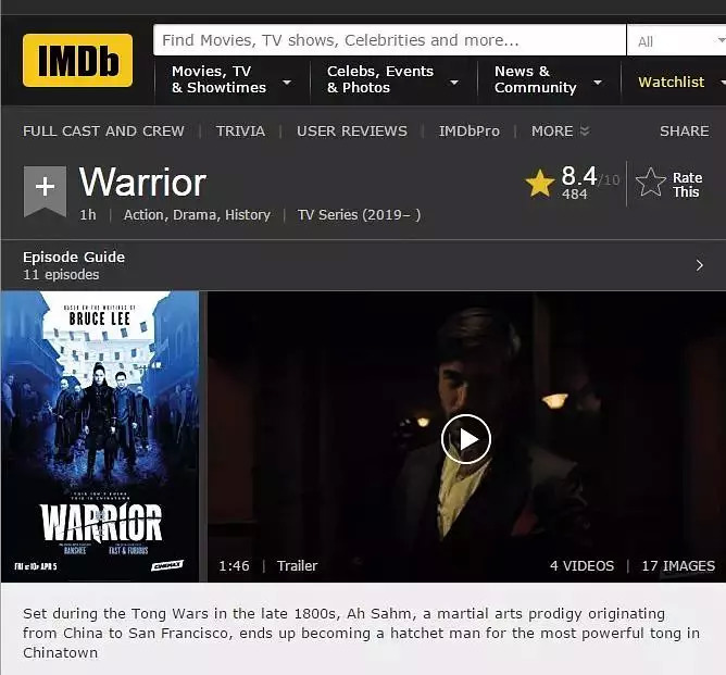 这份感官刺激,让仅仅试播一集的《战士》拿到了IMDB8.4的分数。