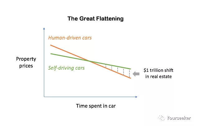 1)无人驾驶使通勤体验更加愉快,因此人们愿意住的更远。