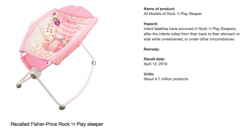 4月5号,美国消费品安全委员会和费雪共同发布了安全警告,当婴儿满3个月,或者可以翻身的时候,就应该立刻停止使用费雪Rock ‘n Play Sleepers摇床。