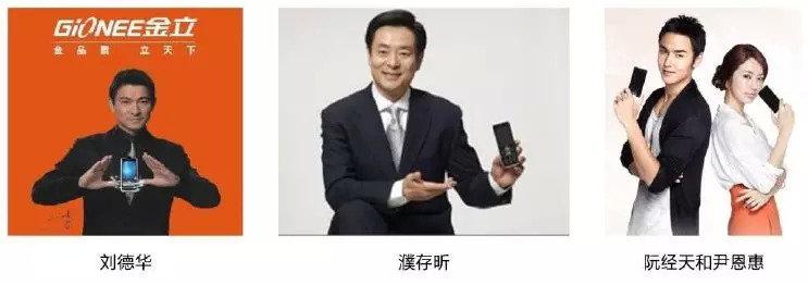 请明星代言(如刘德华,濮存昕,阮经天和韩国女星尹恩惠),冠名电视节目,赞助“超级女声”,一句“金品质,立天下”,让金立手机名声大噪,月销量冲上25万部,成为国产手机市场份额攀升最快的黑马。