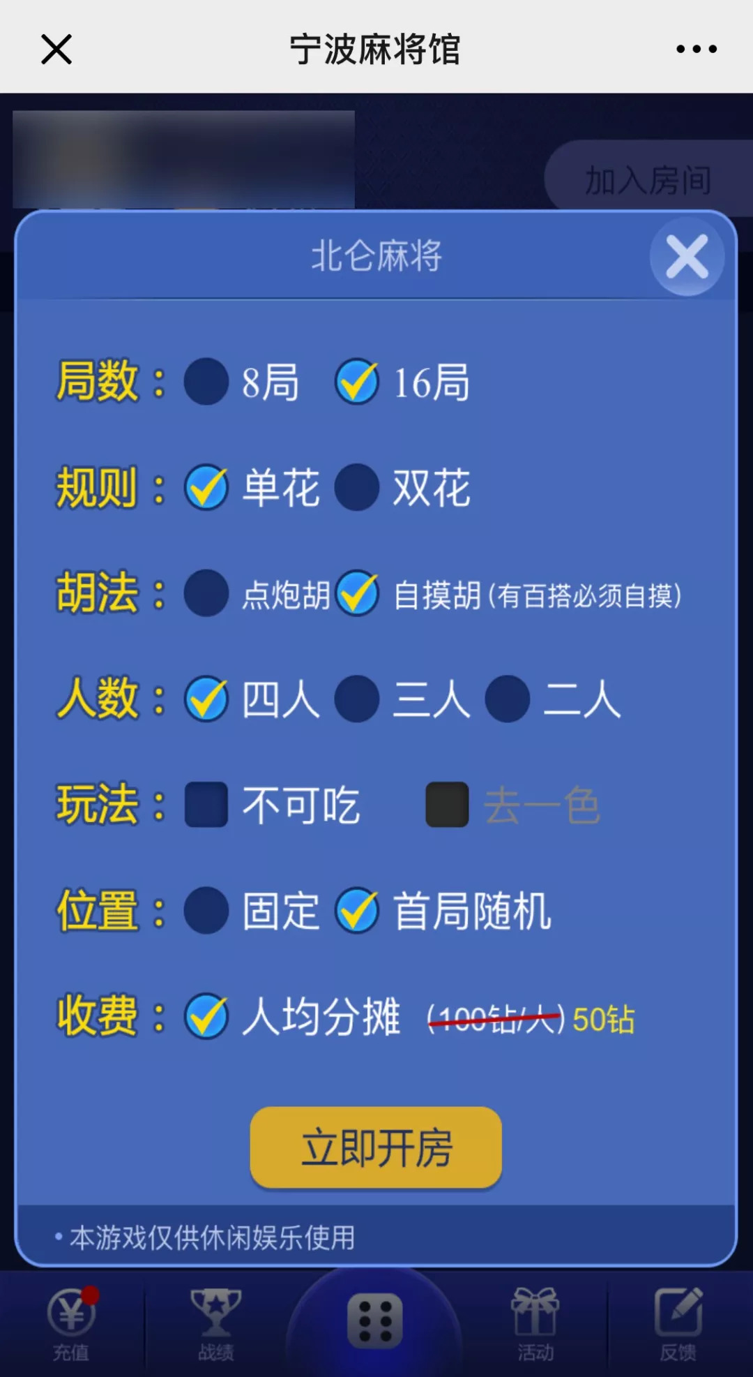 欣欣所热衷的游戏《宁波麻将馆》,采取的就是“房卡模式”。这一模式诞生到普及也不过3年的时间,却给棋牌游戏行业带来了一个又一个的暴利神话。