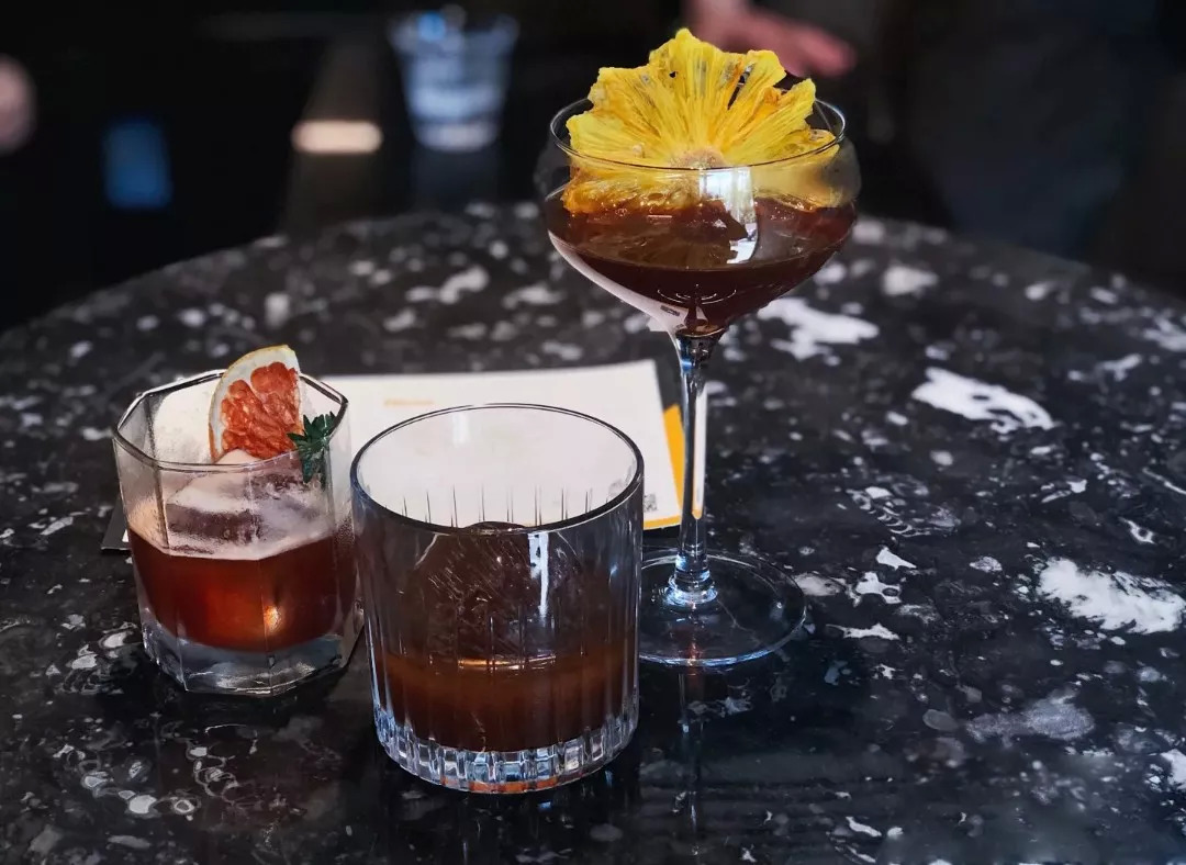 制作产品时,咖啡师来到我们站着的区域,在眼皮子底下完成了每一个操作步骤:用的什么糖浆、加了什么气泡水、为什么要加陈年朗姆酒,她以最低最温柔的声音一一介绍。
