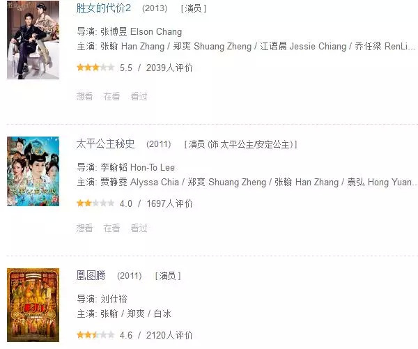 在她与张翰搭档的多部作品中,除了《胜女的代价2》尚存一点IP影响力,其他都是没有任何水花的作品。