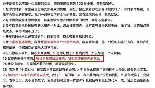 这些美其名曰表达爱与不舍的“100件小事”,其中有几条暗戳戳指控胡彦斌“用情不专”。
