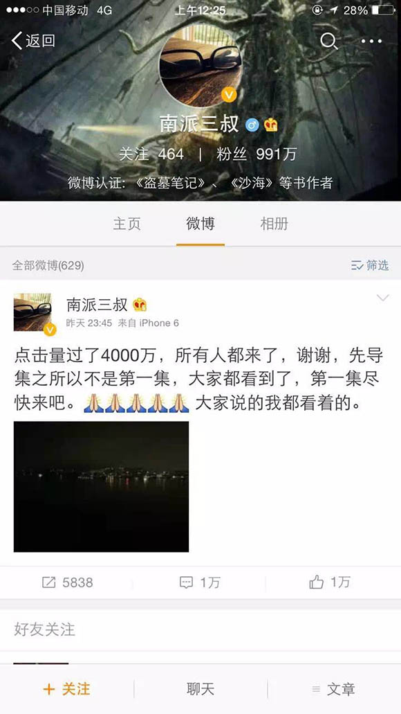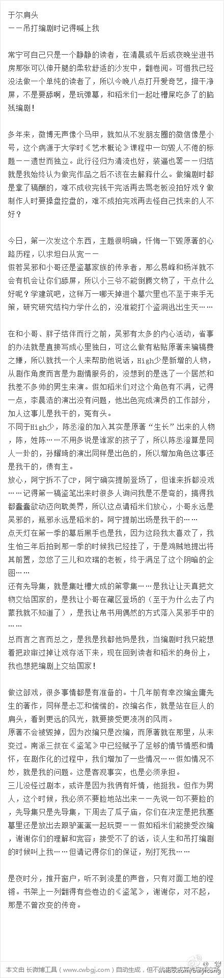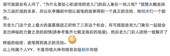 不过在经历了一大波恶评的攻击以后,三叔发了这么一条微博,解释说这还是先导集,所以其实龙脊背是在后面吗?酷爱告诉我!