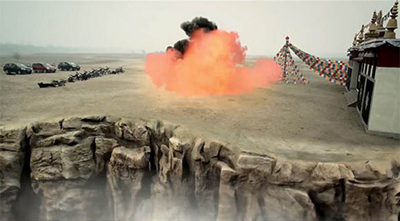 对不起我真的没有看到经费在燃烧,那么钱到底是用在哪里呢?据说这段炸毁摩托车不是为了剧情需要,而是为了展现500万大手笔的特效......