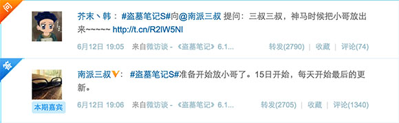 刷了这么多恶评的微博,最能安慰野生原著党的还是以下问答,15日开始,三叔会每天开始最后的更新,在坑里蹲了这么久,终于等来了这一天!