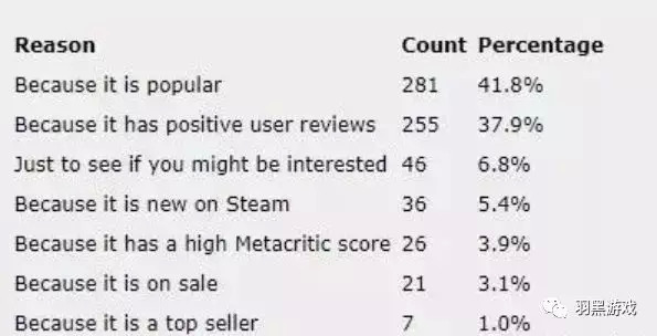 当下steam的游戏推荐算法机制,图片来源Gamelook