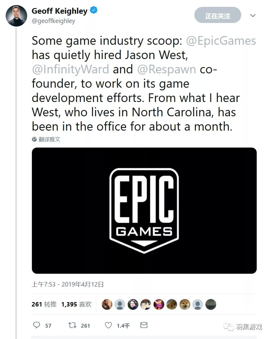 被称为游戏界奥斯卡的TGA举办者GeoffKeighley于4月13日在推特上透露,“EpicGames已聘请《使命召唤》系列创始人JasonWest为其开发游戏,并指出Jason已加入工作室数月”。如果在若干年后,一款FPS大作将登陆PC,那么极有可能是EpicGamesStore独占(以下简称EGS)。