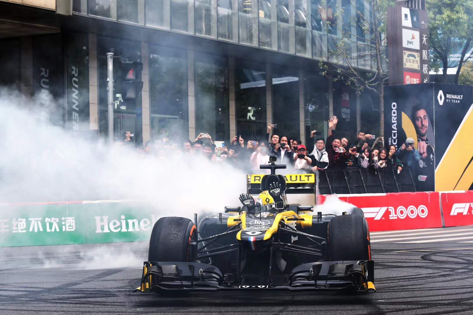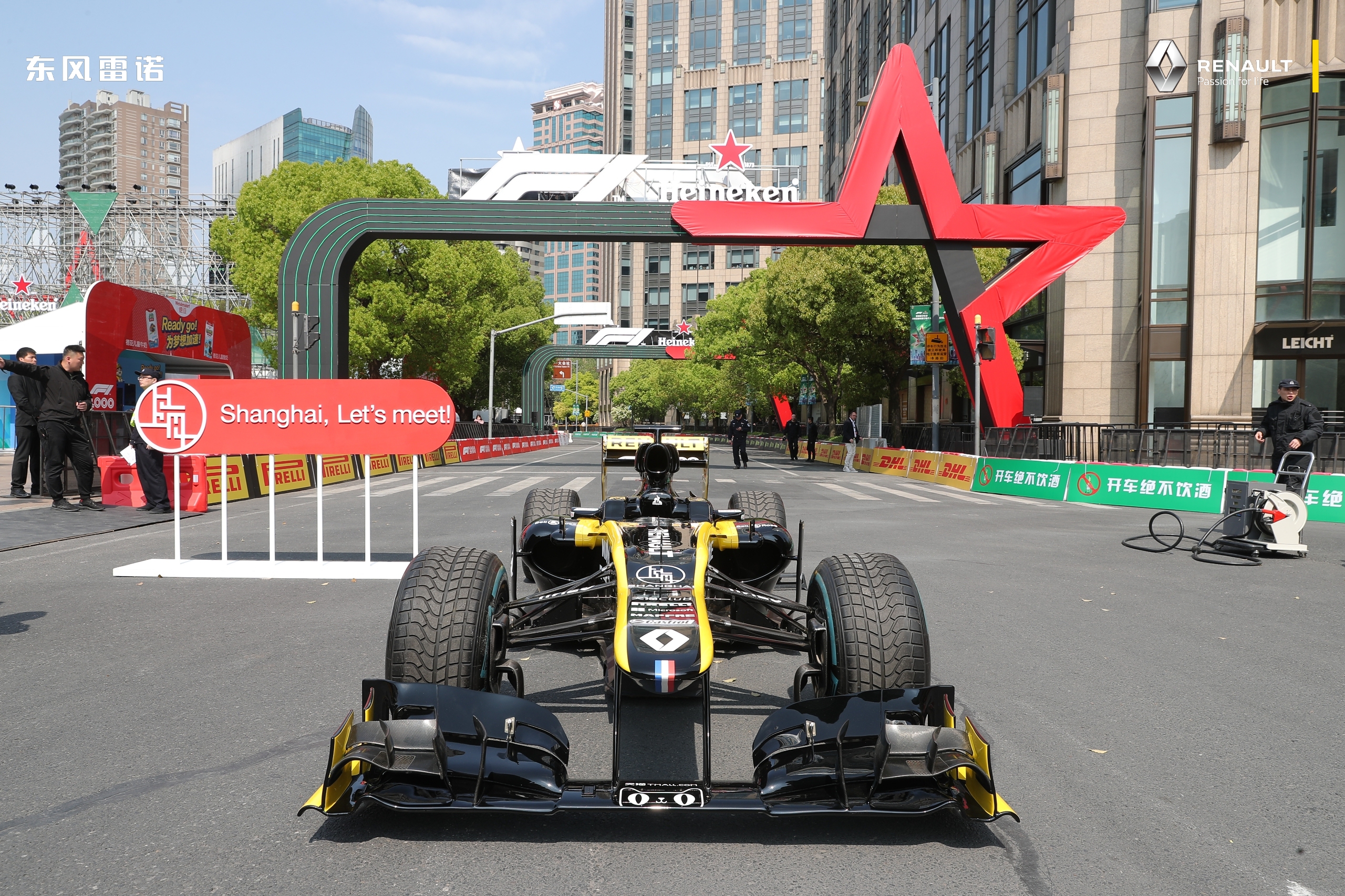 F1联手喜力、雷诺车队等合作伙伴,将路演安排在上海新天地。中国车手周冠宇,将是2012赛季的F1赛车,让V8引擎的轰鸣声响彻在新天地太平湖的上方。图片来源:雷诺
