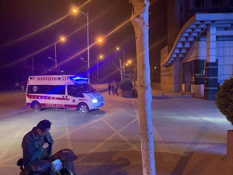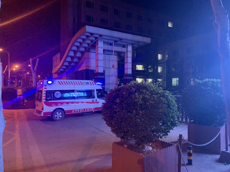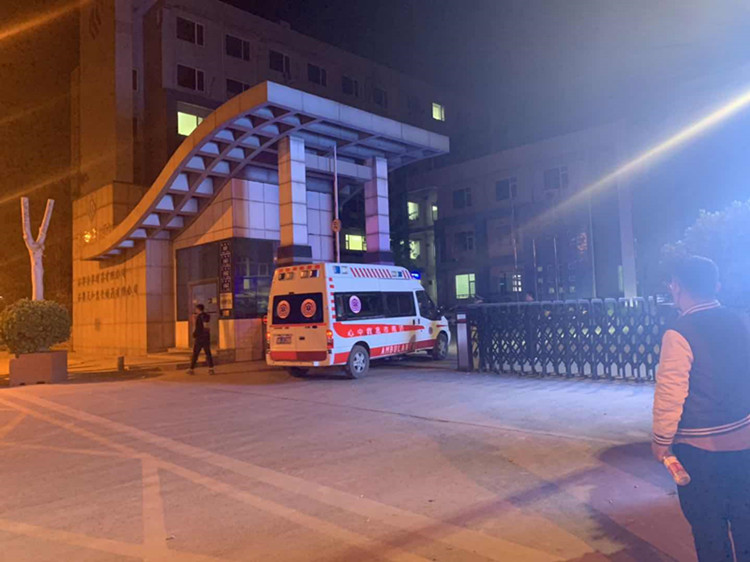 深夜仍有急救车辆进入该制药厂。