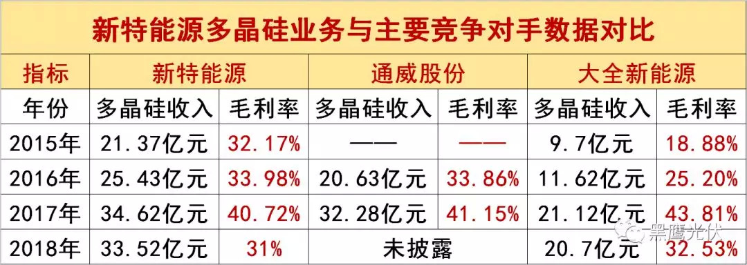 不过,中国多晶硅企业历经市场十多年残酷锤炼后,各大企业都有自己的核心打法,特变的“煤电硅一体化”构建的成本优势正在减弱。据黑鹰光伏团队统计,2017年以来,特变多晶硅业务从毛利率来看,与竞争对手通威、大全等已并不具备压倒性优势(见下表)。