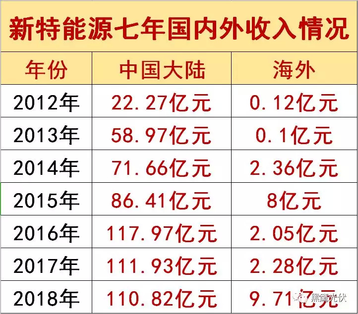 黑鹰光伏团队统计数据发现,特变新能源业务在中国大陆的收入规模已经连续两年小幅下滑,而海外收入则实现了较高速增长:比如2018年新特能源“中国大陆”收入为110.82亿元,同比下滑了1%;而同期海外收入同比增长了325.88%至9.71亿元,创历史新高。