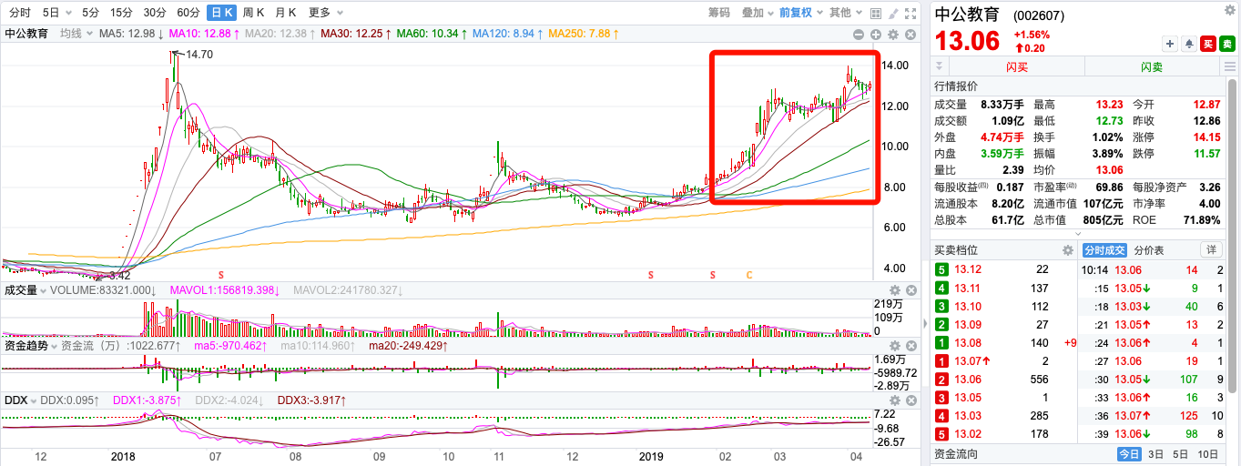 自2019年2月2日更名以来,中公教育股价涨幅超过57%。截至日前,市盈率为69倍,市值805亿元。