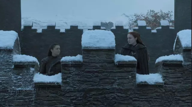 不久之后,临冬城迎来了历史性的一次团聚。在滦河城将瓦德·弗雷家族一锅端的艾莉亚,放弃了去君临的想法,一路北上。