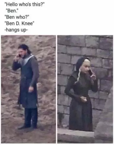 雪诺从临冬城来到了龙石岛,不是听了龙妈的召唤,向龙妈bendthe knee(下跪臣服),那样只需要一通电话就好。