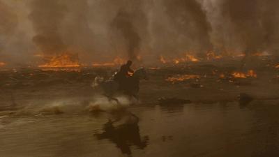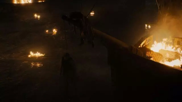 面对龙焰和多斯拉克军团的铁蹄,兰尼斯特军队毫无还手之力。詹姆和波隆,在做着最后的抵抗,波隆射伤了卓耿,但也仅仅是小伤。