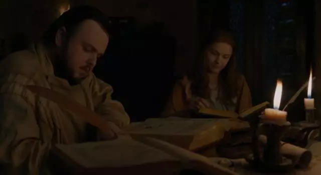 虽然山姆依然没有瘦下来,但他没有偷懒,而是夜以继日地在书中寻找打败夜王的方法。