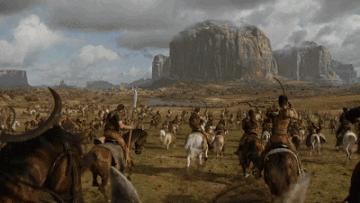 在黑水河之役后,黑水河平静了很长一段时间,直到龙妈带着多斯拉克大军,骑着卓耿,在黑水河边来了场大屠杀。