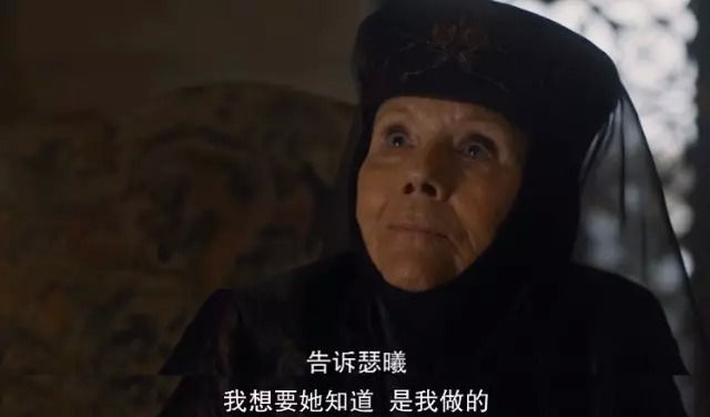 高庭被攻陷,荆棘女王自然也难逃詹姆的手心,她喝下了詹姆给她的毒酒,并在死前对詹姆说了乔佛里的死亡真相。