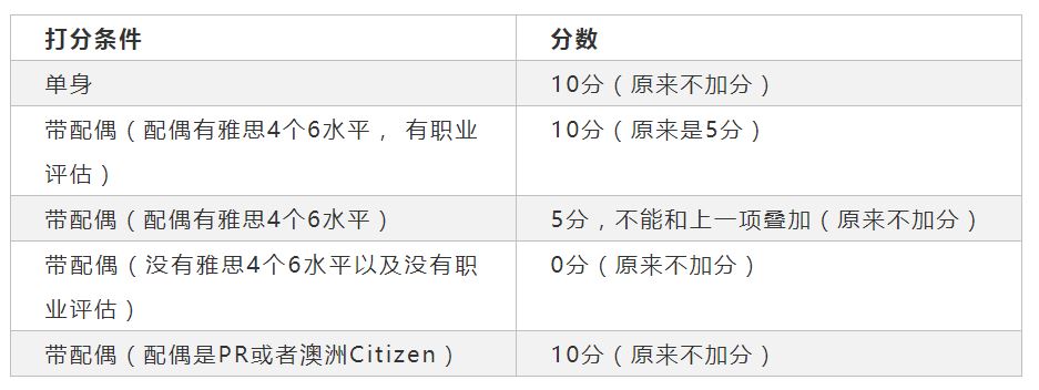 对于独立技术移民,带配偶且配偶没有英语/技能的,将在打分中处于劣势。