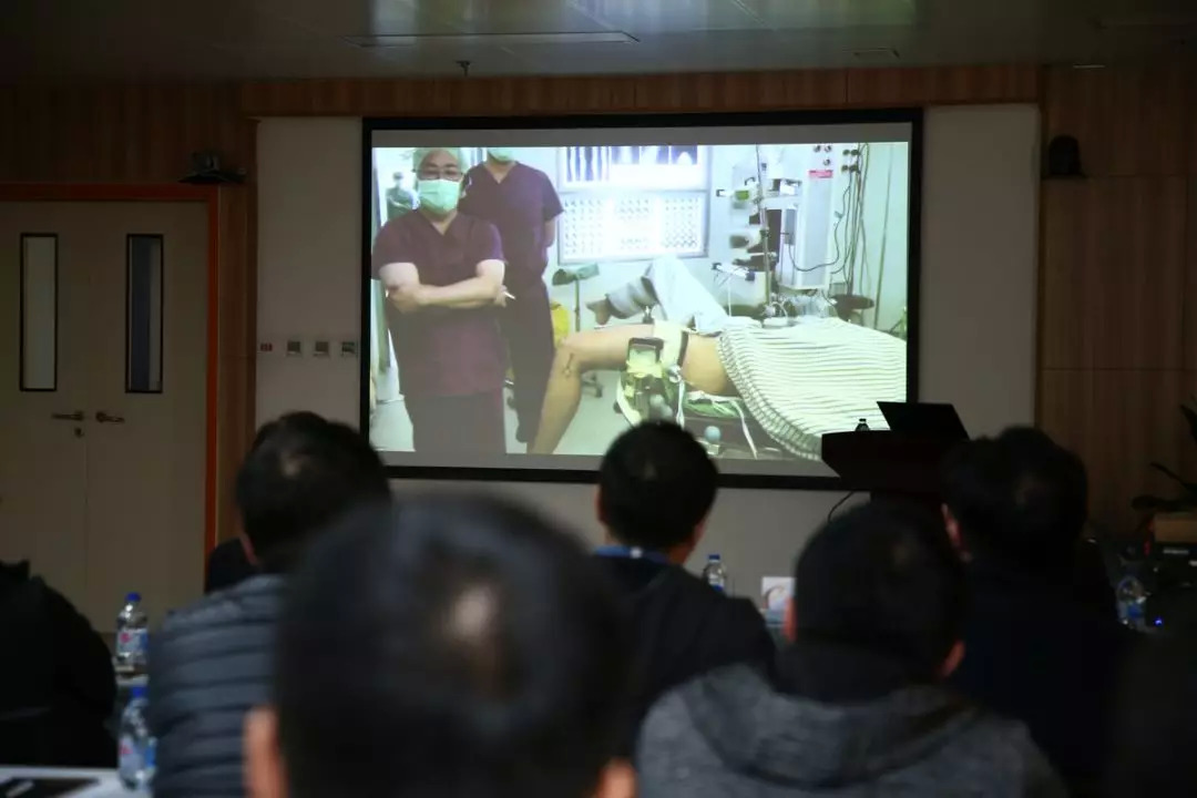接下来Dr.Bancha分别进行了前交叉韧带撕裂合并外侧半月板巨大桶炳撕裂、前交叉韧带合并内侧副韧带撕裂的两台手术演示,由我科吴疆医生作为助手与Bancha教授合作,手术过程进行了全国网络直播,由黄竞敏教授进行全程解读并对现场同道提出的问题即时与Bancha教授进行交流。精湛的手术技术与先进的理念展现了国际高水平专家的水准和一丝不苟的工作态度,此次手术直播在线观看达到2694热点。术后会场答疑环节,Dr.Bancha与黄竞敏教授在诸多专业理念契合,进行了更加深入的讨论。