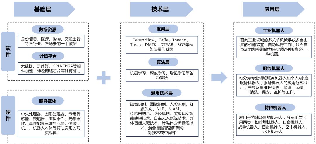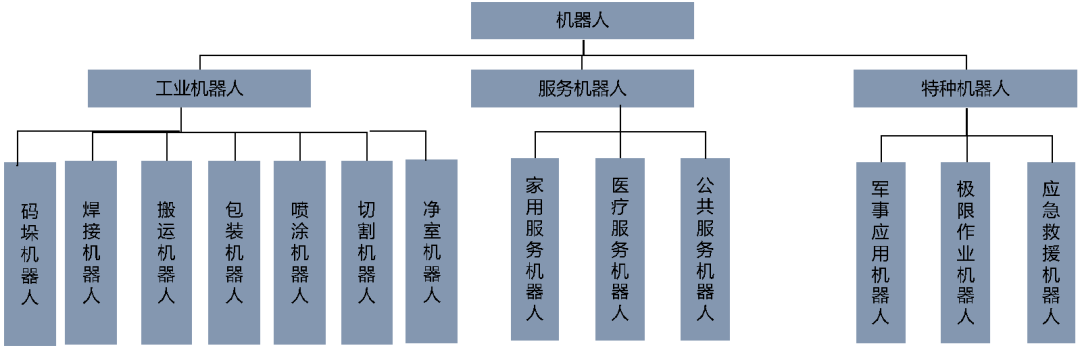 机器人产业经过发展萌芽、产业孕育和快速发展,目前已发展到智能应用阶段。随着感知、计算、控制等技术的迭代升级,以及图像识别、自然语音处理、深度认知学习等人工智能技术在机器人领域的深入应用,机器人的智能化水平不断提高,同时机器人领域的服务化趋势日益明显,逐渐渗透到社会生产生活的每一个角落。