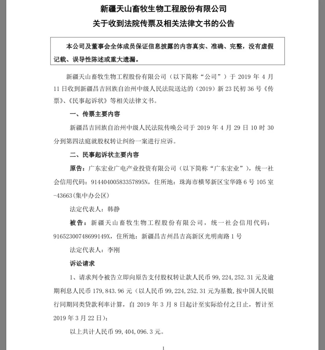 据传票显示,原告的诉求正是要求被告天山生物支付相关转让款和利息。按照《购买资产协议》,这笔款项本该不迟于2019年3月7日完成支付。独立来看,这是一场再普通不过的经济纠纷,但如果了解天山生物近半年的动作,会发现此刻发起这场诉讼并非表面那么简单,这或许还是是这场争夺战的一次反攻。