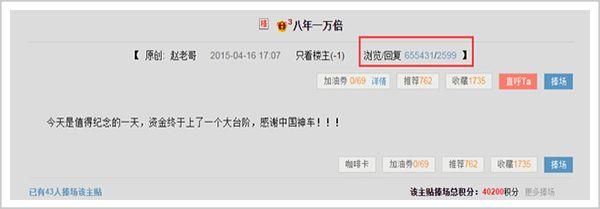 2015年4月,一篇《八年一万倍》的网帖火遍全网。发文者以激动的心情宣告,个人资产突破10亿,引发60万网民的围观与膜拜。