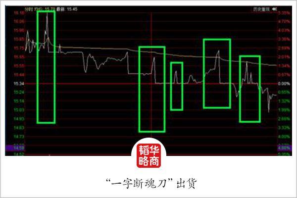 等到出货日,敢死队仍会将股价迅速拉升,佯装封板。但这次,大卖单从天而降,秒砸出巨量;对涨停抱幻想的人,还忙着抢筹码,等涨停;而抛单却延绵不绝,股价的分时走势,横竖都形成明显的“1”或“一”字。