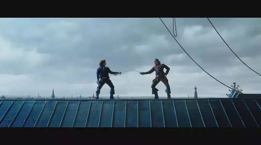 夜里的巴黎圣母院是黑暗世界缠斗的战场,白天也不消停。在2011年法国出品的《三个火枪手》(The Three Musketeers)中,达达尼昂同样选择在巴黎圣母院的楼顶迎战敌人。