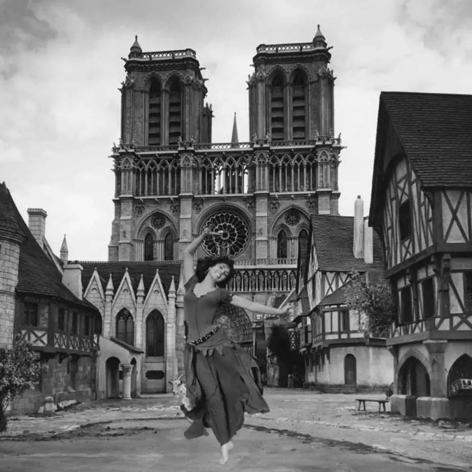 1956年版的《巴黎圣母院》(Norte Dame de Paris)由法国、意大利合拍,艾丝米拉达和卡西莫多在教堂前上演着喜乐悲欢:
