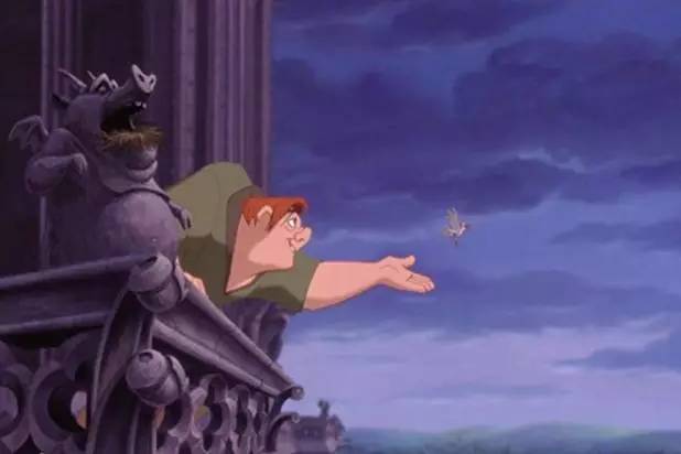 在好莱坞的布景下,巴黎圣母院带着几分神秘色彩,善良的灵魂、丑陋的外表、神圣的雕像,在这一幕中蕴含了多重象征: