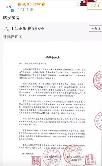 没想到在B站这件事情上,蔡徐坤和粉丝的维权出师未捷身先疲,重演了虎扑的一幕。