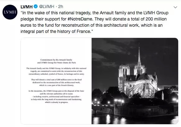 说他们有所图,当然也合理,巴黎圣母院着火在刚刚过去的一天里,吸引了全球的目光,在这一事件中站出来,是展现企业社会责任的一个重大机遇。