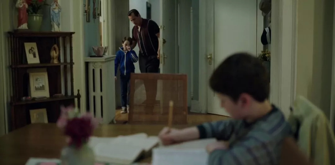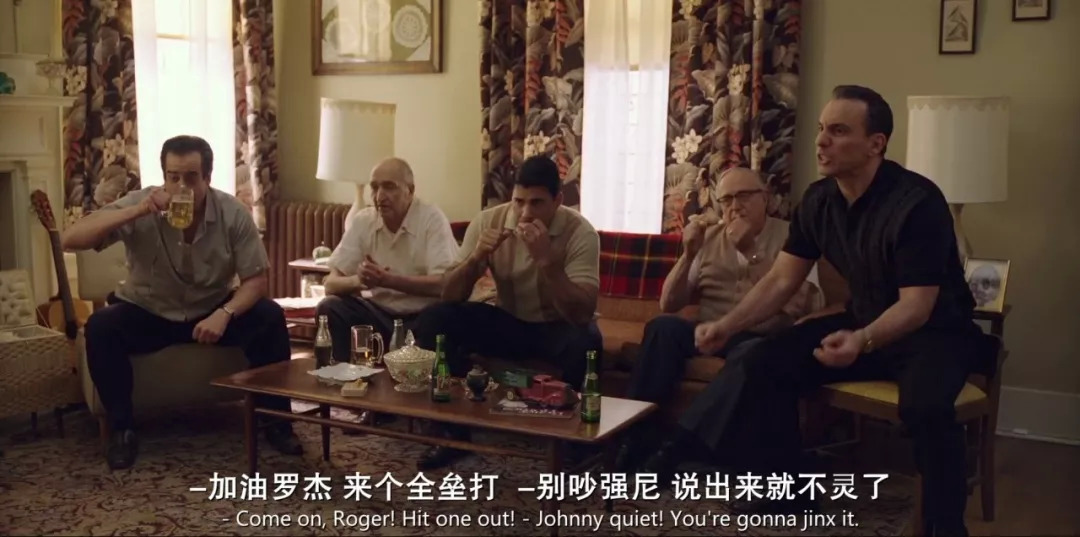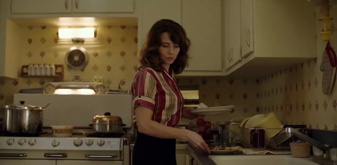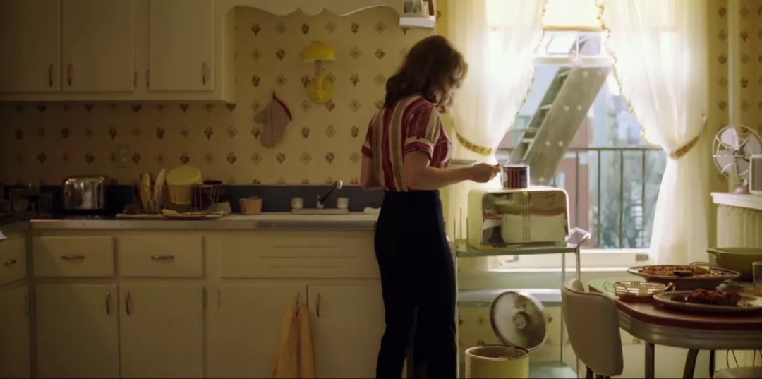《绿皮书》是双男主设置,其中一个白人男主角,托尼,他家是典型的美式风格装饰:花色布艺、花卉、地毯、实木家具、厨房壁柜……托尼家的客厅木质地板上,铺着大块地毯,布艺窗帘也有彩色花瓣的元素。