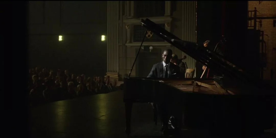 唐拥有最好的演奏条件,有全场唯一的聚光灯,但他并没享受到演奏真正的乐趣。唐的巡演是专门为主流社会的白人准备的,演奏期间,上流社会白人优雅客气;演出一结束,唐在他们眼中马上从优秀演奏家变成低等黑人,连上厕所都只能去院子里的木棚。