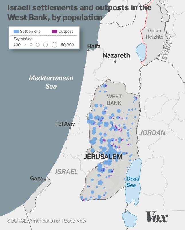 以色列建国之后,数次中东战争的结果无疑使得以色列进一步扩大了自身的地缘政治优势,作为一个特殊的无宪法(只有基本法)、无明确边界(以色列不愿与周边国家划定)的民族国家,以色列试图贪婪地吞并周边更多的领土,尤其是在1967年第三次中东战争之后,以色列侵占了埃及的西奈半岛、叙利亚的戈兰高地以及属于巴勒斯坦的加沙地区和西岸地区,并开始在这些被占领土上修建定居点。