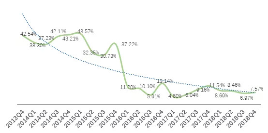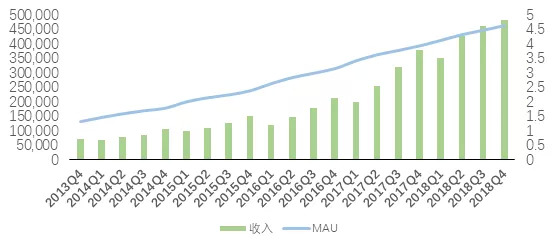 用户粘性提升的同时,用户数量也在不断的增加。虽然受互联网流量红利不断减少的影响,微博MAU的环比增速(以一个季度为一个周期)在阶段性的下降。