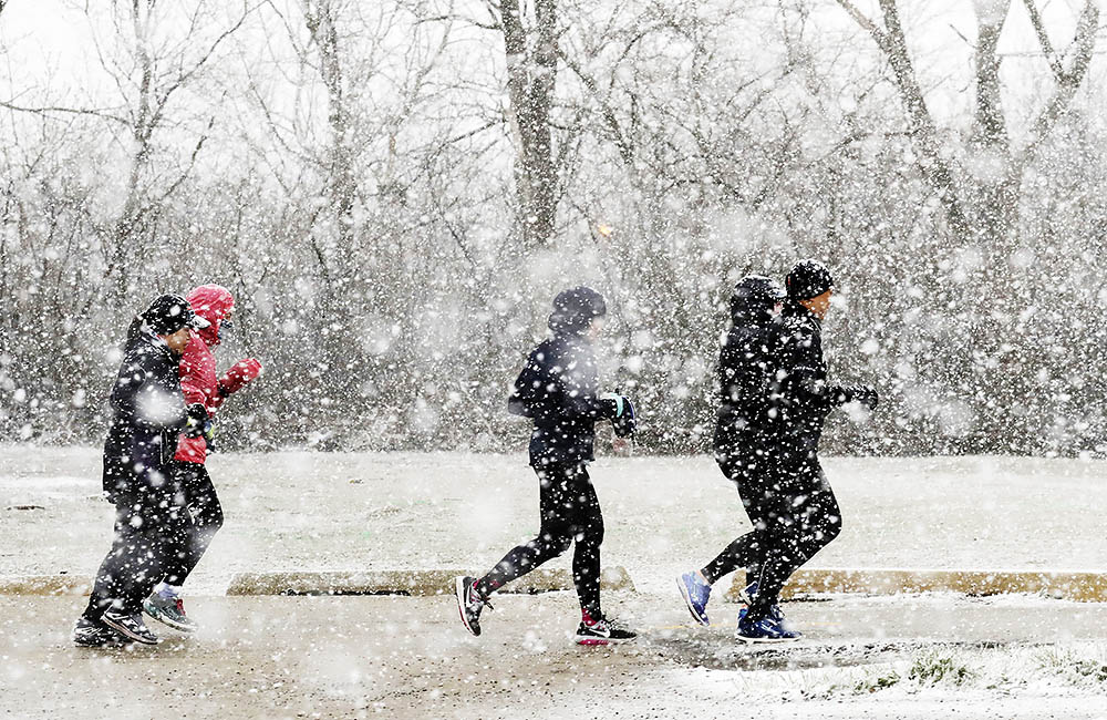 当地时间2019年4月14日,美国芝加哥,受季节风暴影响,当地迎来风雪天气,大雪飘飞导致交通受阻。