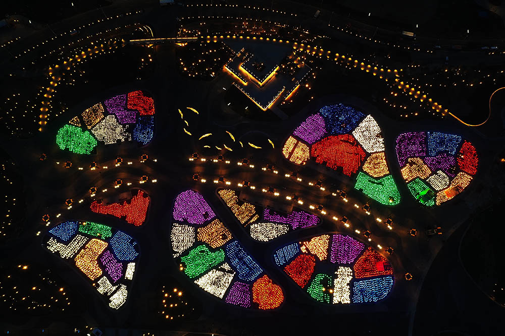 2019年4月16日晚,北京世园会园区正在调试夜景灯光。从空中鸟瞰,灯火璀璨,熠熠生辉。 2019中国北京世界园艺博览会将于4月28日开幕,目前园区各项筹备工作已基本完成,进入收官阶段。