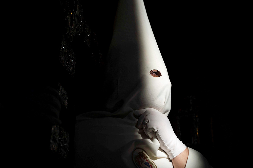 当地时间2019年4月17日,西班牙,复活节前夕,西班牙多地举行规模宏大的“圣周”游行,教徒戴着传统锥形尖帽,气氛庄严肃穆。