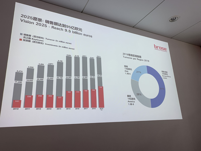 根据博泽集团首席执行官Kurt Sauernheimer兆海默公布的数据显示,去年亚洲地区的销售额为13亿欧元,占比21%;美洲地区的销售额为18亿欧元,占比28%;而欧洲和非洲地区的总销售额为32亿欧元,占比51%。