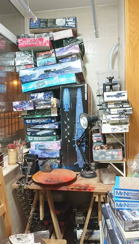 只要给小钧一张桌子,他可以坐一整天,一直在桌子上鼓捣模型。至今,他家里还没做的模型盒子,从地上一直堆到天花板。