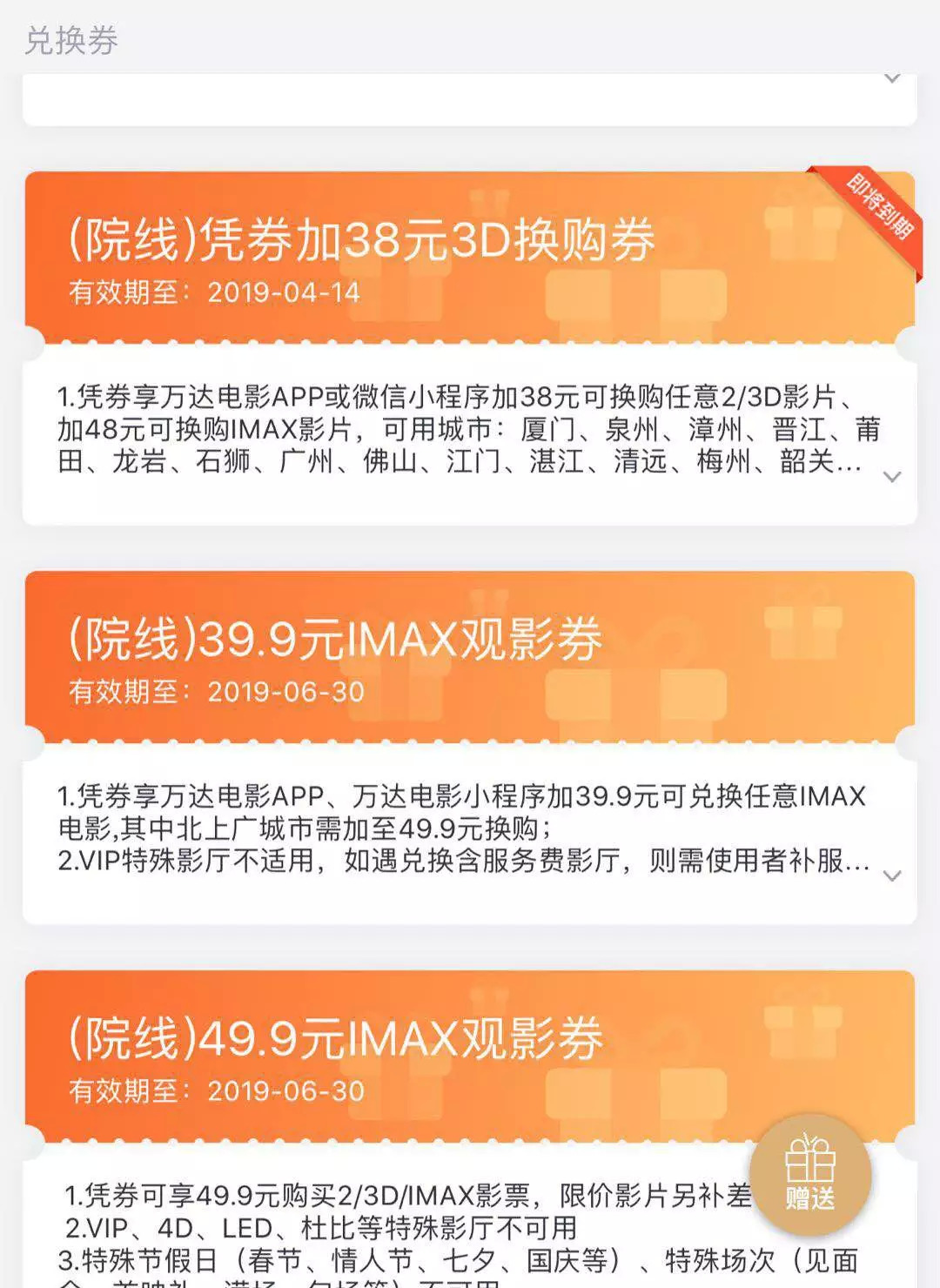 低价票有很多种渠道获得,以万达为例,因为我购票次数很多,是万达的五星会员,因此万达会定期给我的账户里发一些39或者49的通兑券。另外,万达APP也会有签到和新用户活动,有些黄牛就会大规模搞账户通过这个渠道获得低价票码。